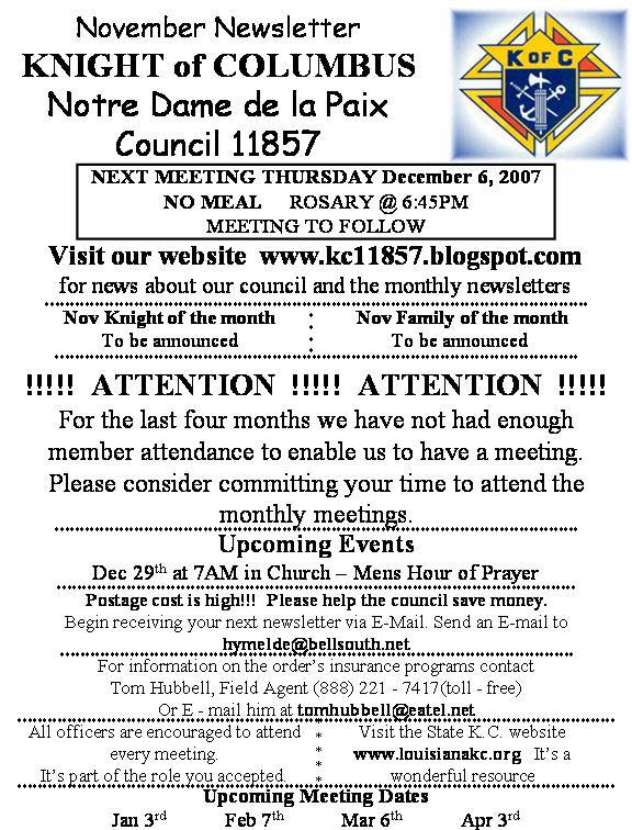 The squires would like to express our thanks to all who have supported us in our fundraising efforts. The funds will be put to good use in building a Veterans Memorial Monument on Our Lady of Peace Church grounds.